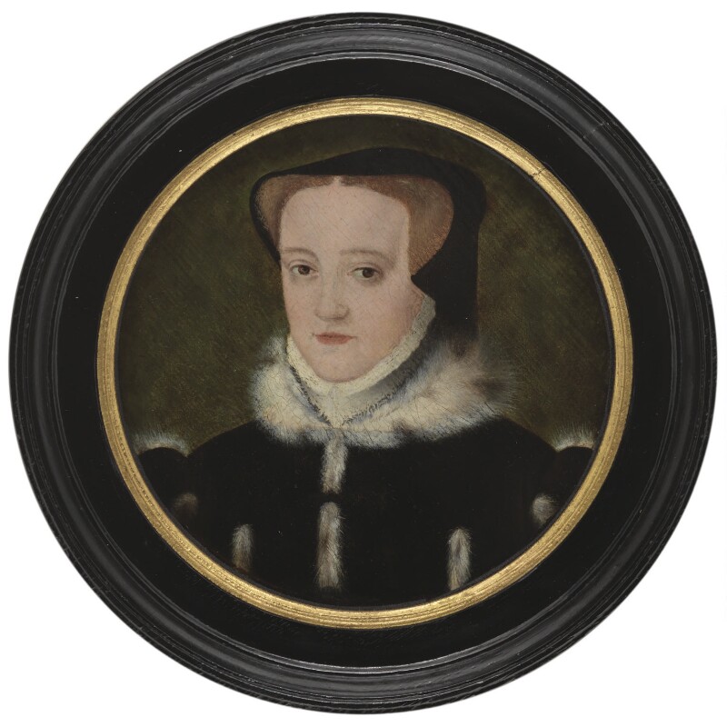 The early history of the portrait is unknown, however, an article published in 1845, concerning the large collection of historical artifacts in the collection of Thomas Baylis, at his London home Pryor’s Bank, does give us some clues about its previous owners. Situated on the banks of the river Thames, Baylis commissioned the building of Pryor’s Bank in 1837 to house his vast collection of antiques. Described in the article as hanging between the library and dining room is a portrait of ‘Queen Mary by Lucas de Heere, from the collection of Mr Dent’.[3]