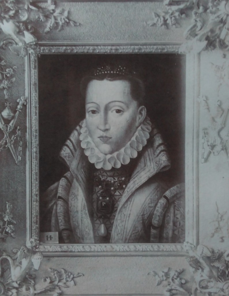 “Mary I, in a black dress, fur tippet, a profusion of pearls and jewels in her cap and dress, many rings on her fingers, by Lucas de Heere. Panel, 28 1/2 by 36 1/2, in gilt frame *A most curious and rare Portrait, from the Collection of the late Mr. Dent”[6]
