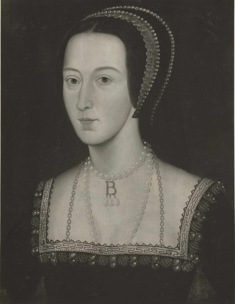 The portrait King Stephan also shows similarities to several contemporary illustrations showing the king with a bobbed hairstyle and beardless. Stephan is also seen beardless in his profile image on a silver penny from 1136 and is depicted in a full-frontal pose in the illustrated image for Matthew Paris’s ’Historia Anglarum’ produced between 1250 and 1259. Unfortunately, Talbot’s book does not include an image of Anne Boleyn, and it appears that artist who created the Hornby portrait looked elsewhere when depicting this legendary queen.